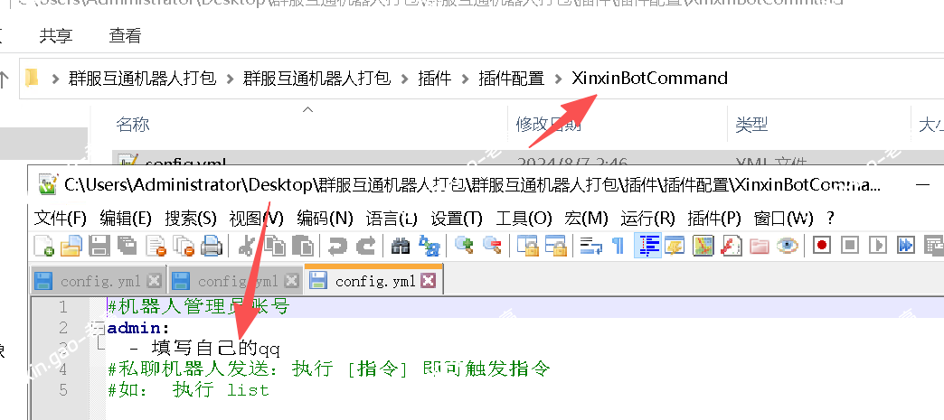 (2)配置 xinxinbotcommand 插件